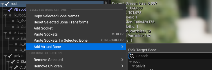 만약 Character가 이러한 IK Bone이 없는 Skeleton을 사용하고 있다면 Virtual Bone을 추가하여 사용할 수 있다