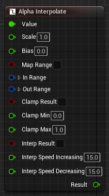 Input Value (float), 증가, 감소 속도(Interp Speed Increasing, Decreasing) (float), Inerp된 결과를 받을것인지? (bool)을 인자로 가진다 그 외에 인자는 우선 Defualt로 사용한다