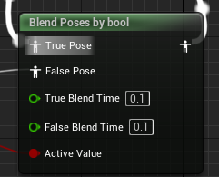 Blend Poses by bool : Active Value가 T이면 True Pose, F면 False Pose를 return한다 이때 Blend Time은 해당 Pose로 Blend되는데 필요한 시간을 의미한다